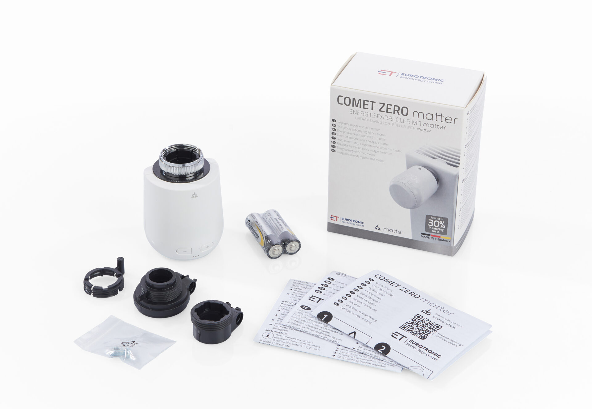 Der Comet Zero Matter ist ein mit dem Matter-Funkstandard V1.3 kompatibler Energiesparregler. Er kann mit verschiedensten Smart Home Systemen wie Alexa, Google, Apple oder SmartThings verbunden werden. Ein einheitlicher Kommunikationsstandard sowie die systemübergreifende Nutzung machen seine Vernetzung besonders einfach. Lokale Kommunikation und seine Zertifizierung sorgen für optimale Sicherheit. Smart bis ins letzte Detail: Heiz- und Sparzeiten sind wochen- und tageweise individuell einstellbar. Besonders charmant: Der Comet Zero Matter hilft dabei, bis zu 30% an Heizkosten einzusparen und erkennt sogar, wenn ein Fenster offensteht.